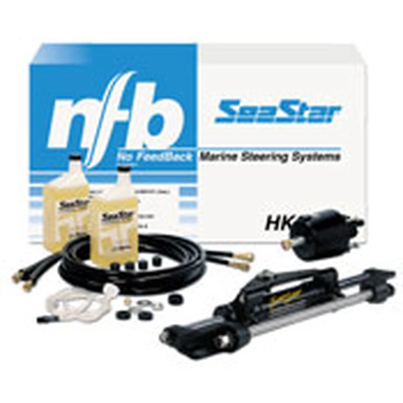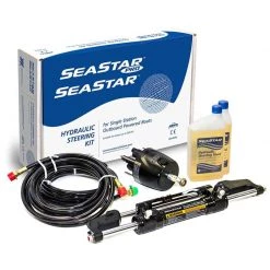 | Hydraulic steering kits for most single or twin outboard-powered boats A popular choice for unmatched comfort and control of your outboard, these steering systems offer smooth and efficient steering for all hull types. Use with single outboards up to 300hp and dual outboards with a maximum combined total of 600hp. Kits include a smooth front-mount 1.7cu.in. displacement helm pump, semi-universal front-mount cylinder, two quarts of oil, bleeder kit and installation guide. The popular HK6322A kit comes complete with a set of two 22′ hoses. The HK6324A kit comes complete with set of two 24′ hoses. Hoses can also be purchased separately for use with the HK6400A kit, which does not include hoses. HO51XX hoses are available in lengths ranging from 2′-34′. The compact helm has a 4 7/16″ footprint and requires a 3″ cutout. Meets ABYC standards and NMMA requirements. Specifications