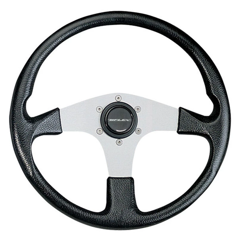 UFLEX USA Corse Steering Wheel, Black Grip/Silver Spokes