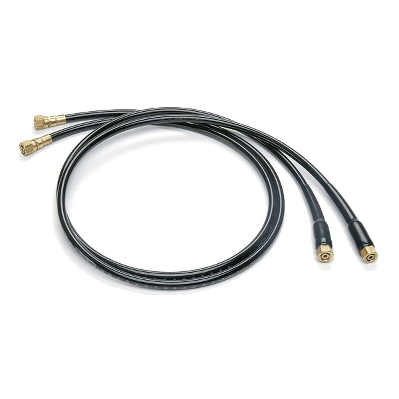 Two high pressure flexible hoses with pre-crimped brass fittings and bend restrictors on both ends. Recommended for use with all Ultraflex helms with 1000psi relief valves, including the UP20FM, UP28FM and UP33FM Front-Mount Helm Pumps.